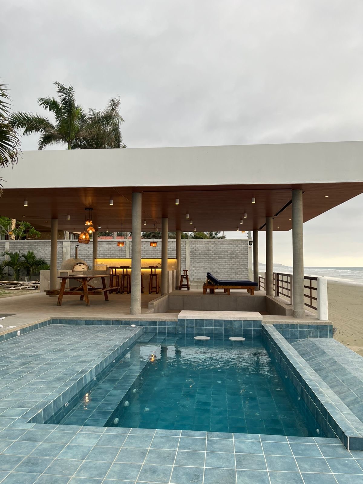 Amazing beachfront 1rst floor apartment, near Olon 3 bedroom 4 bath with fantastic sea views from the balcony, a few steps from the beach sand, with an incredible large pool/infinity jacuzzi, with barbecue grill, beach palapa social area, with a fire pit, full beach bathroom, fully equiped with verything you need in kitchen, and air conditioners in each room and internal social area, big balcony social area, property is fully fenced, and main gate is remote controlled and motorized.