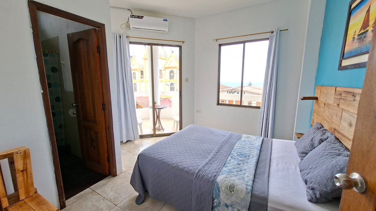 Amplia suite matrimonial con vista hermosa al mar, estamos cerquita de la playa. Estamos ubicados en la zona del surfista de montaña, a unos pasos de la playa, una zona tranquila y segura, contamos igualmente con cámaras de seguridad y garaje privado. Del centro estamos a 5-6 minutos caminando por la playa.