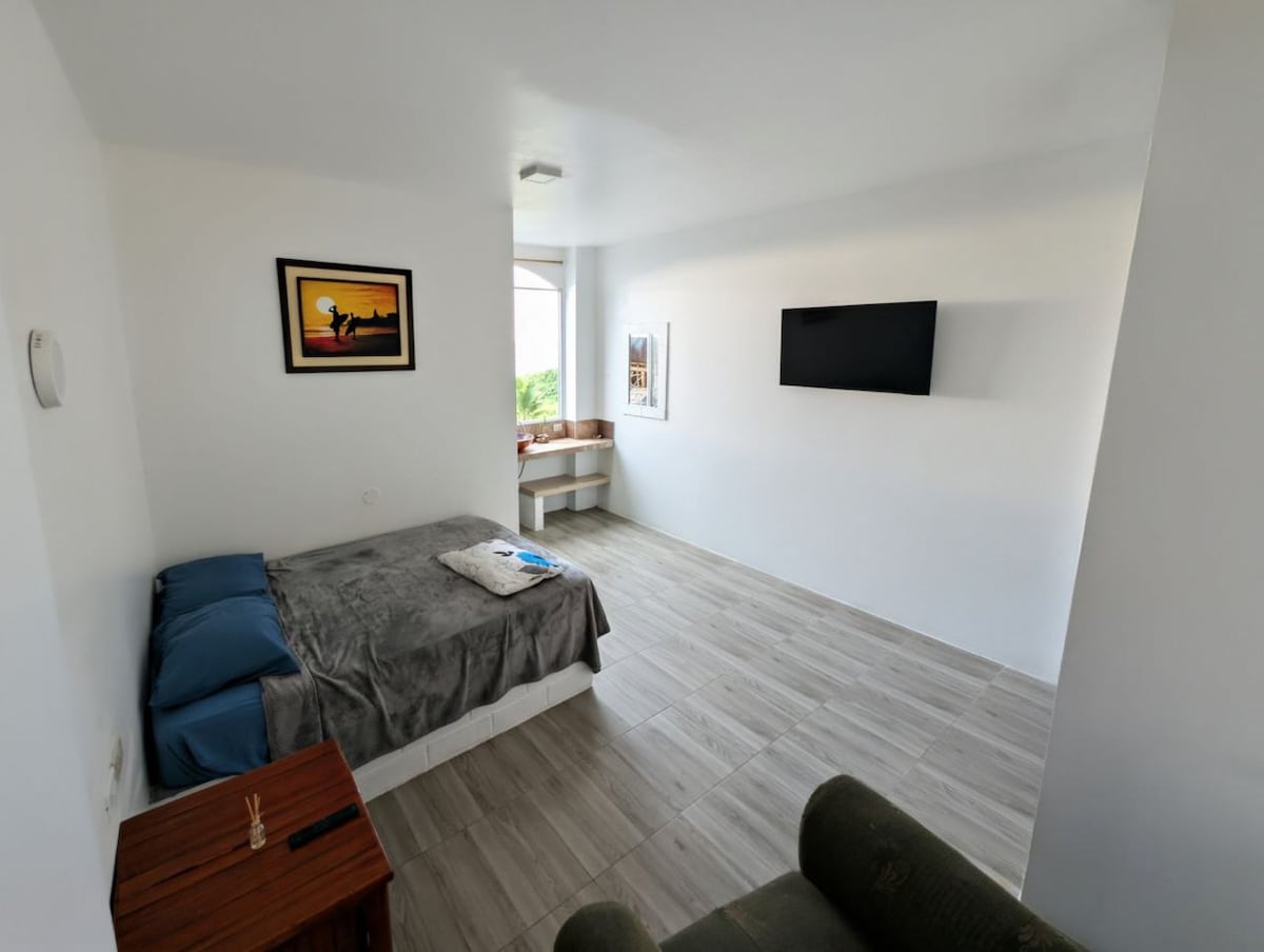 Esta habitación es genial para parejas está localizada cerca de todo, pero lejos de la bulla. Con TV Smart aire acondicionado nuevo ducha caliente espacioso amplio con ventana y linda vista al rio te sentirás a gusto para tus vacaciones memorables.