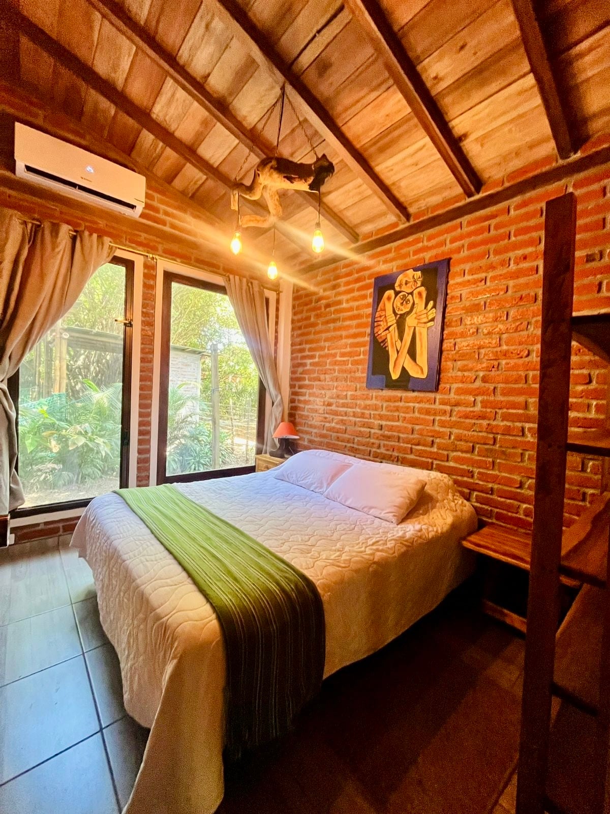 Our house offers modern amenities in a quiet, relaxing, and safe neighborhood. Enjoy beautiful green and sky views from your bed and throughout the house. The property features a spacious backyard, a comfortable patio with a hammock, a fully equipped kitchen, private parking, and peaceful surroundings. Located less than a minute by car (or 10-minute walk) from downtown Manglaralto, you’ll find grocery stores, bakeries, restaurants, and more nearby. Montañita is just five minutes away by car.