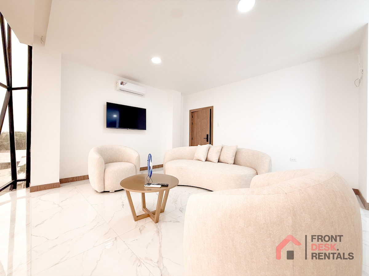 Suite elegante frente al mar , perfecta para desconectar y disfrutar. Relájate en el hidromasaje privado al aire libre, con vista directa al océano y la brisa marina . La suite incluye una cómoda cama King Size, aire acondicionado y un diseño que combina confort con estilo costero. Ideal para escapadas románticas, festejos de ocasiones especiales o unos días de descanso frente al mar Además, cuenta con un hall equipado con dos sofás cama, incluye una área con cafetera, microondas wuaflera