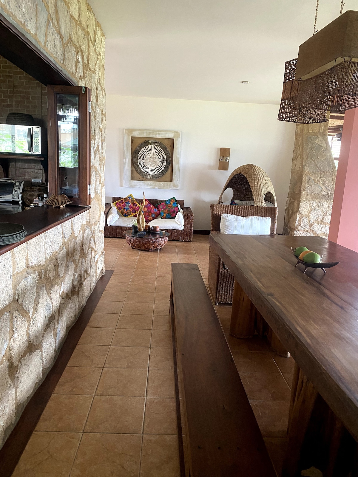 Our house offers modern amenities in a quiet, relaxing, and safe neighborhood. Enjoy beautiful green and sky views from your bed and throughout the house. The property features a spacious backyard, a comfortable patio with a hammock, a fully equipped kitchen, private parking, and peaceful surroundings. Located less than a minute by car (or 10-minute walk) from downtown Manglaralto, you’ll find grocery stores, bakeries, restaurants, and more nearby. Montañita is just five minutes away by car.
