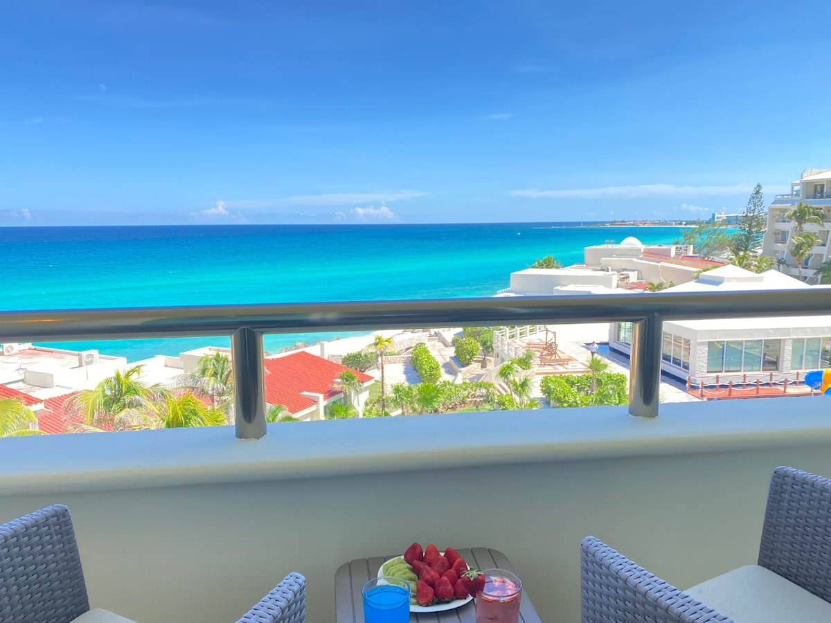 Directly on the beach. Views are spectacular as soon as you walk through the front door. Both the living room and the bedroom have views of the sea. Facilities like pools, jacuzzi, lounge chairs, shades, gym, tennis court are available for you (for free) High speed Wifi All inclusive optional through the hotel for food and drinks as we share facilities with Oleo Cancun resort (today $95 usd p/p per day) There are also 3 restaurants across the street (a la carte) + a convenience store.