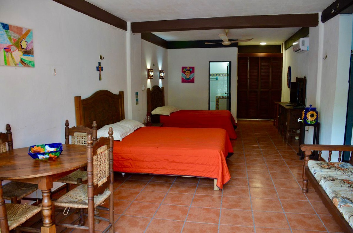 VC Boutique Hotel is located in the heart of downtown Isla Mujeres.. Only steps away from the crystal clear waters of Playa Norte. We have 4 studio suites.. soon to be 6! This listing is for Room #1 located on the second floor. All rooms are fully equipped with unique wood furniture, a queen and single bed, a kitchenette, dining table for 4 and a spectacular patio that overlooks the famous North Beach... perfect place to enjoy your morning coffee or sit back and enjoy a good book.
