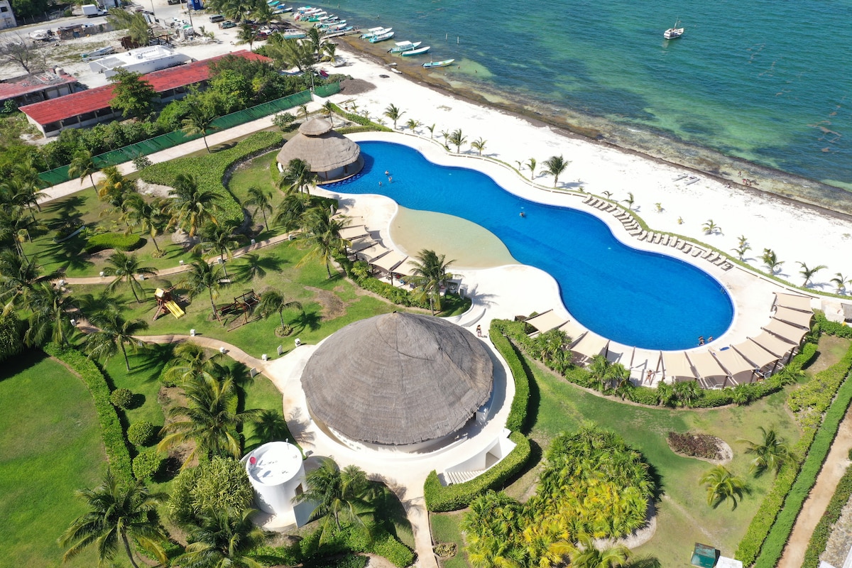 🏡 Acogedor Estudio para 2 personas. Cuenta con varias albercas 🏊🏼♀️ y un precioso jardín situado frente al océano, con una hermosa vista al mar Caribe 🌊 🔸 Ubicado en un condominio privado 🛡️ 🔸 A unos pasos de la Playa del Niño🏖️ 🔸 A minutos caminando del ferry a Isla Mujeres 🏝️ Alejado del turismo masivo, pero bien conectado con las mejores playas, restaurantes y actividades de la Riviera Maya. Incluye servicio de Concierge 🛎️ gratuito para ayudarte a organizar todo en tu viaje.
