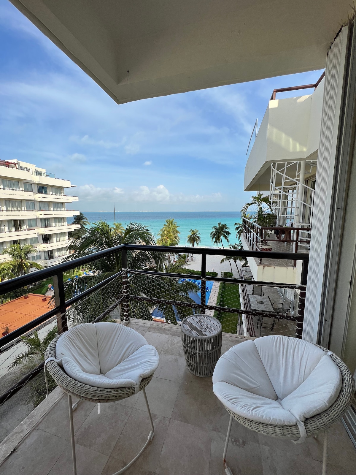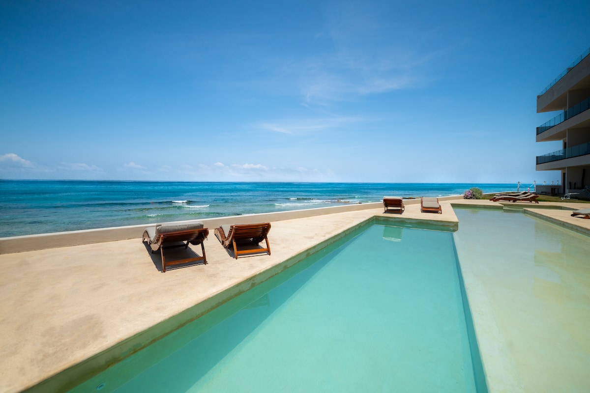 Welcome to our magical and cozy apartment! Perfect for families or small groups: maximum 4 adults and 1 children. Wake up to the Caribbean breeze in this exclusive ground-floor condo with direct access to the beach and pools. Enjoy exclusive, unique, and unforgettable ocean views from the terrace and bedroom. Located in a private complex with 24/7 security in the Hotel Zone, close to restaurants and transport. Relax, unwind, and experience paradise just steps from the sea!