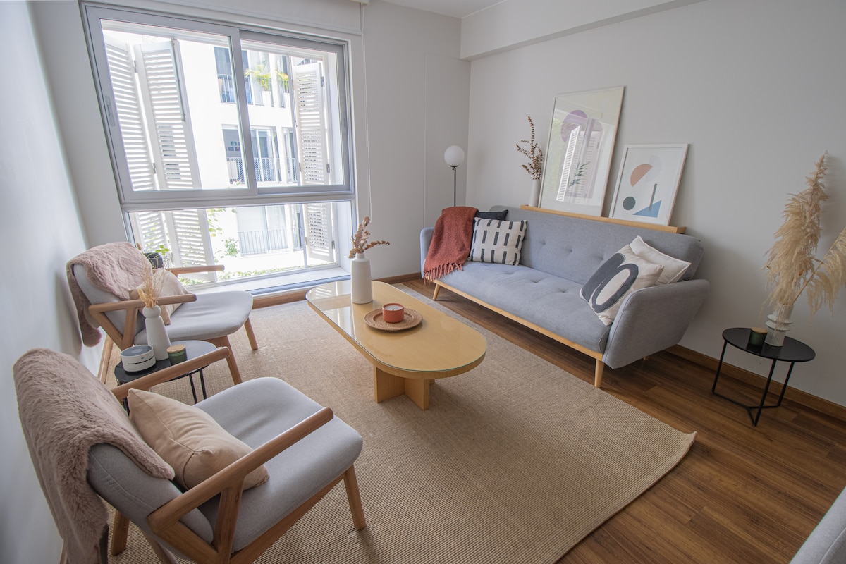 Acogedor departamento en una zona privilegiada del hermoso y bohemio distrito de Barranco, implementado con mucho cariño con lo necesario para que tengas una cómoda estadía. Te recibimos con una rica fuente de frutas de estación e inciensos para que te relajes y te sientas como en casa viendo una peli en Amazon prime, escuchando música o simplemente conversando. Tranquilidad y buena energía sobra en este depa! Disfruta de caminatas por el malecón, el centro de Barranco y a un pasito Miraflores.