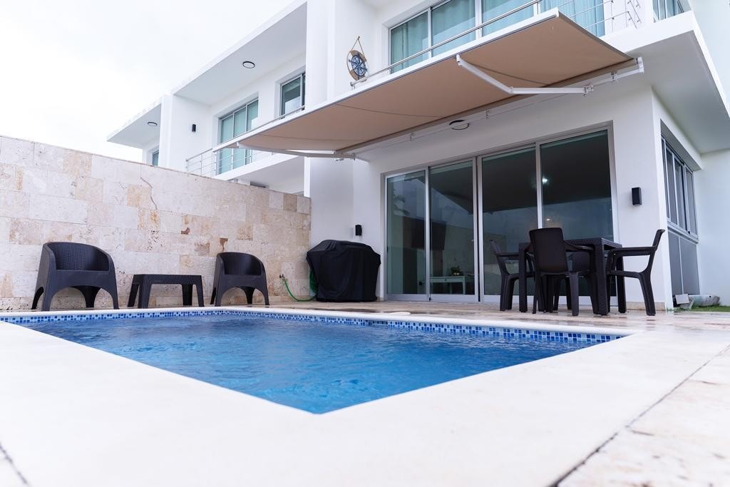 Step into luxury at our modern villa with designer interiors, a rooftop patio, and sun deck. Dive into your private pool and enjoy a 3-minute walk to beach club, you have full access to all beach facilities for free! Perfect for family or group getaways, plus, tee off at the prestigious PGA Ocean's 4 Golf course just 5 minutes away. The exclusive Playa Nueva Romana is 45 minutes from Santo Domingo Airport, an hour from Punta Cana, and only 20 minutes from La Romana Airport!