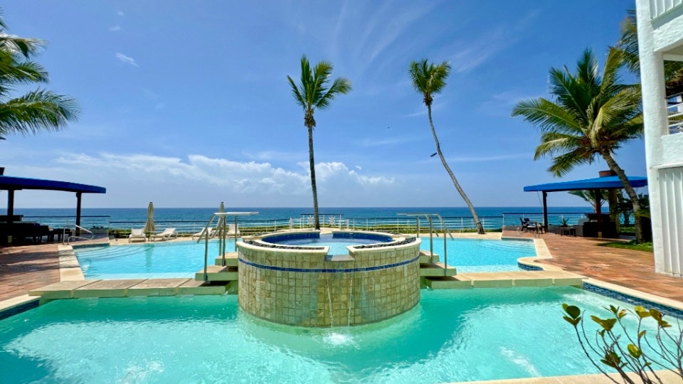 Disfruta de esta relajante experiencia en nuestro apartamento frente al mar, rodeado de amplios espacios de recreación y tranquilidad, este apto es el lugar perfecto para quienes bucan comodidad y belleza en su próximo destino frente al mar. Podrás tener acceso a la playa de Juan Dolió a 5 min caminando. Áreas comunes: • Piscina • Jacuzzi • Lobby • Gazebo • Cancha de voleibol A 10-15 minutos en coche del Malecón, Jumbo, el estadio de béisbol Tetelo Vargas y la Zona Franca.