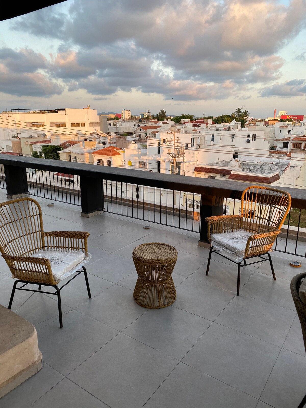 Vive una experiencia acogedora en este encantador loft, ubicado en el corazón de la Zona Dorada de Mazatlán. A sólo 5 minutos caminando de la playa, estarás rodeado de restaurantes, bares y tiendas. Disfruta tu café en la terraza privada por la mañana o relájate al atardecer con una copa y las espectaculares vistas de la Zona Dorada, la isla y el mar mientras compartes momentos inolvidables al aire libre.