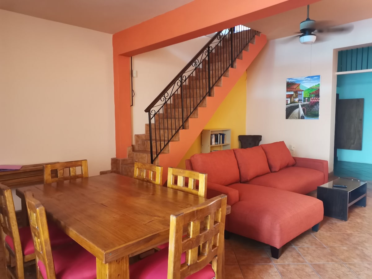 Spacious 3-bedroom home with 5 beds and A/C in every room—perfect for families or groups. Two private patios, one with a hammock and one with BBQ and picnic table. Fully equipped kitchen, washer/dryer, and comfy living areas. Walk just minutes to Plazuela Machado, the beach, Mazatlán Cathedral, and bustling markets. Enjoy a safe, comfortable stay in the heart of Centro Histórico.