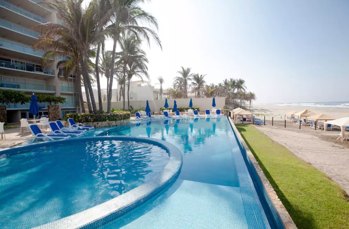 Lujoso, moderno y amplio departamento al pie del mar con vista espectacular de la bahía. El condominio tiene acceso directo a la playa, una zona de alberca con jardin, wifi gratuito en áreas comunes, sundeck y playa privada ! Ambiente relajado y familiar, seguridad las 24h y un personal muy amable y eficiente. Excelente ubicación, a un paso del club de golf, muchas opciones de restaurantes y supermercado cercanos. No se aceptan mascotas.