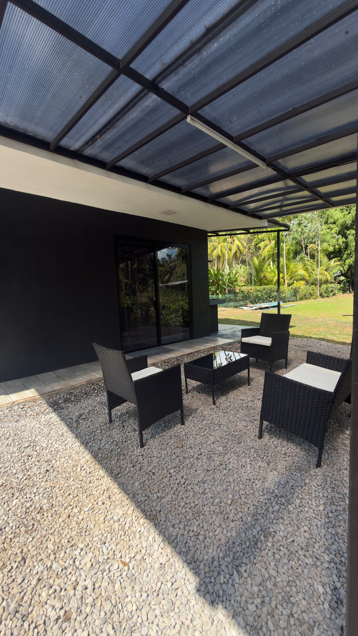 Exclusive villa with private pool that combines modern and comfortable design with the natural beauty of Costa Rica. Ideal for two people, expandable to accommodate up to four guests. Located in the village of Pavones, in a quiet neighborhood, just an 8-minute walk from Pavones point break. Fast Wi-Fi throughout the property. Spacious suite bedroom, private bathroom, walk-in closet, surfboard rack, and AC. Living and dining area with two large sofas, home cinema projector, and bathroom.