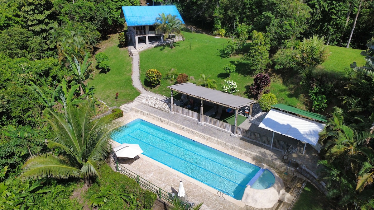 6 Min walk to the famous Pavones point surf spot Backyard overlooks pristine jungle Walking distance to restaurants and amenities 3 Bed room 2 Bath AC units in each room Ceiling fans throughout house hot showers Fiber Optic wifi TV Washer/Dryer Outdoor kitchen with wood burning pizza oven Fully stocked kitchen lounge space to relax in front/back yard look for monkeys,sloths and toucans while relaxing on hammock enjoy morning coffee on viewing platform spot the sloth