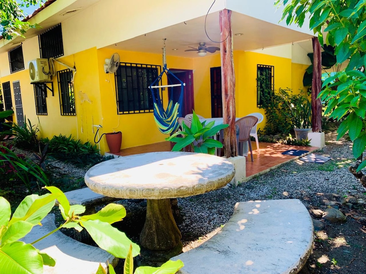 Immerse in tranquility this peaceful retreat is where you can unwind & recharge while enjoying the company of playful monkeys & 300m walk to the secluded Playa Sombrero just 30 min from Puerto Jimenez. Located near Corcovado National Park. Whether you're looking to explore, fish, or surf, this is the perfect base for your adventures. Maid, laundry, and surfboard rental upon request. Come discover your sanctuary in nature, where respect for the environment & its inhabitants is our priority.