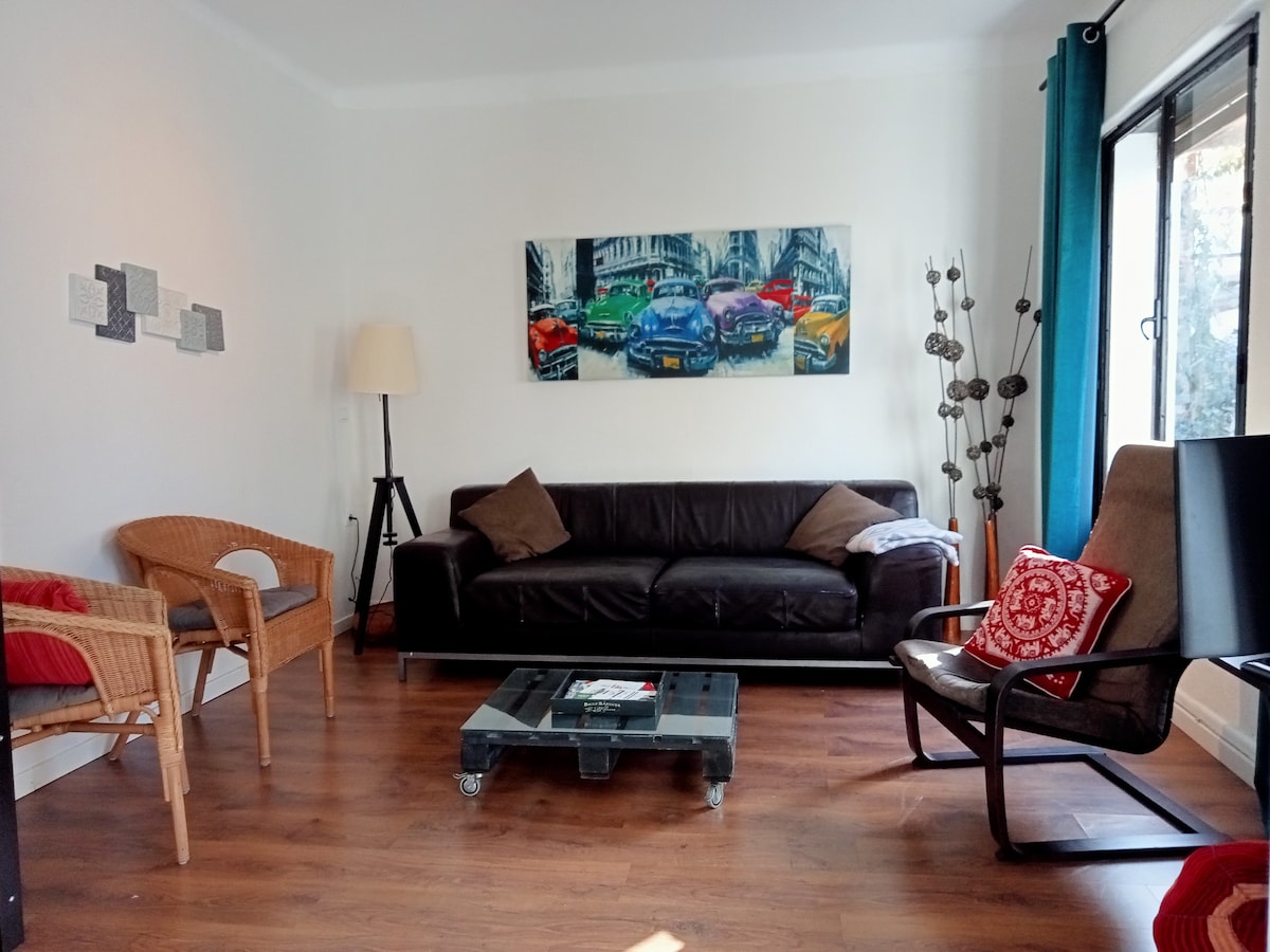 Find comfort in the stylish design of this quiet apartment in the heart of Málaga's city center, at 20 minutes walking from the beach. The apartment with a modern design, bright white with rustic wood contrasts, is equipped with chic furnishings and decor throughout. It's ideal for a couple, a couple with two children, a single adult, a business traveler or two friends.