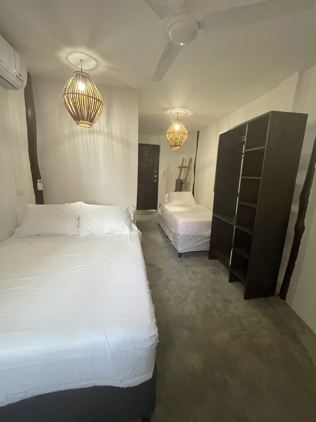 Sirena Surf House has been designed to welcome it's guests in a cozy atmosphere. Apartamento Bella is a beach front private apartment on the second floor with a private entrance, a big open living room and kitchen area and a private terrace surrounded by trees. The bedroom has a king size bed, a private bathroom with walk-in shower and opens to its own little terrace. The wooden sliding doors open up to beautiful ocean views of Playa Popoyo. Your bed is just steps away from the Pacific.