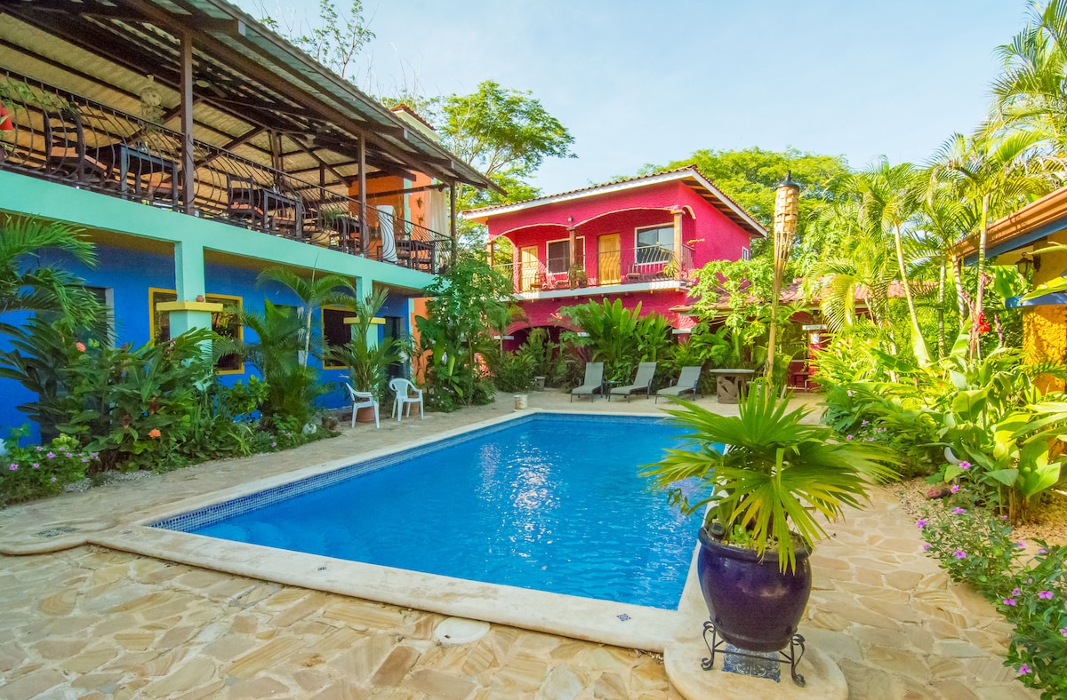 Relax in a boho-colonial hideaway in our lush 4-room hotel. This room offers a queen bed, A/C, kitchenette, outdoor porch, secure parking, fast Wi-Fi, hot water, and spa-like toiletries. Enjoy poolside lounging, complimentary snacks, and à la carte breakfast. Peaceful, cozy, and just minutes from Tamarindo’s beach, shops, restaurants and cafés. We will gladly help you coordinate special requests, transportation and activities.