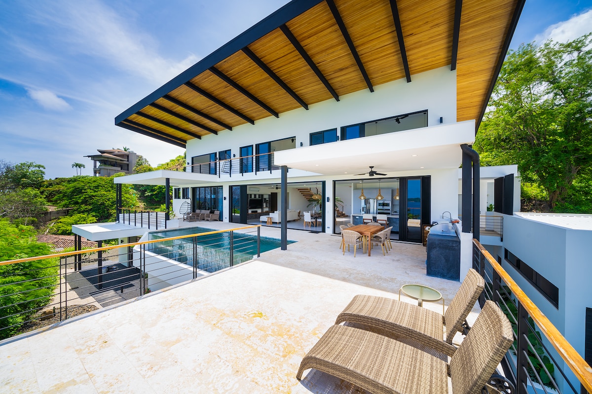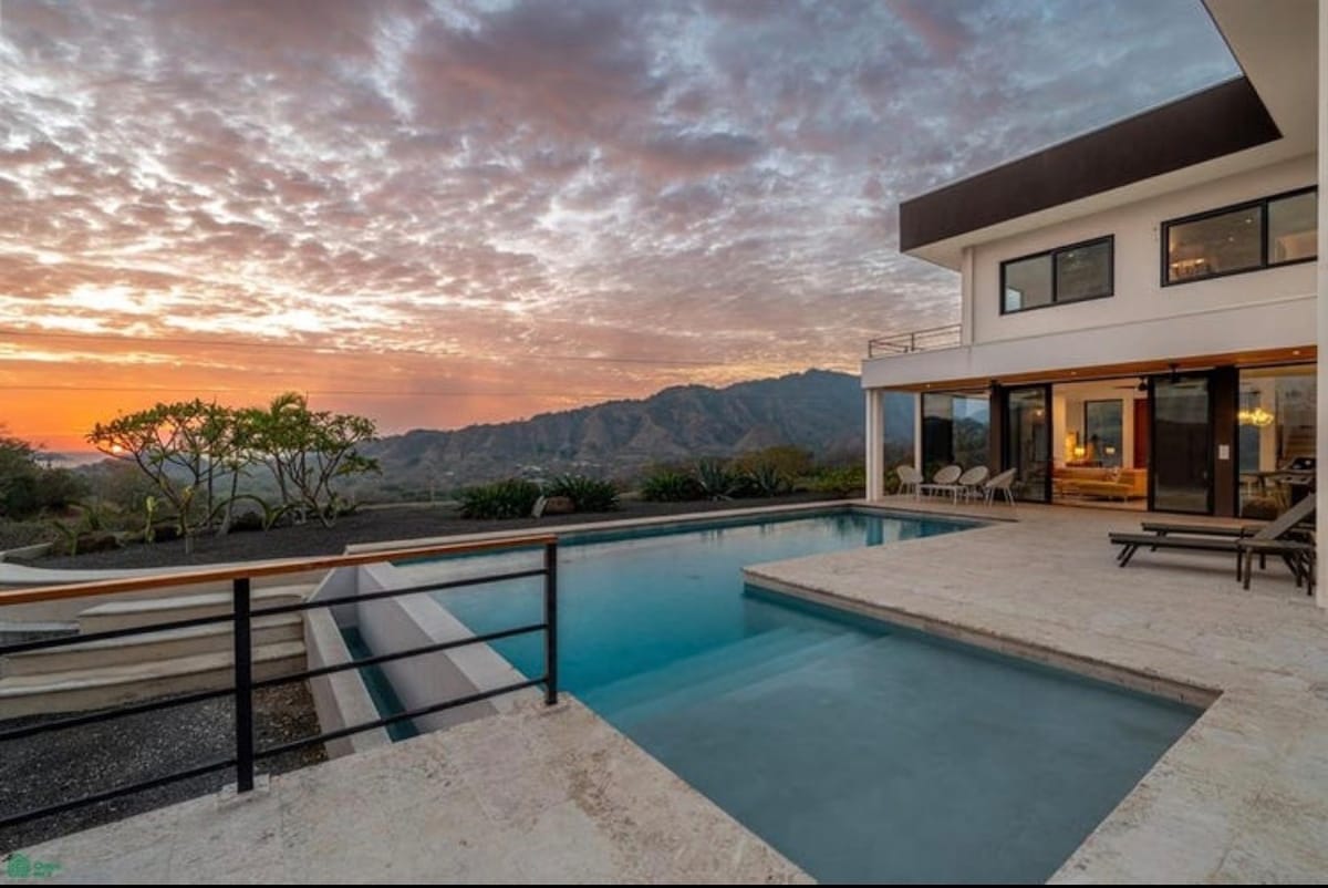One of the best ocean and mountain views in Playas del Coco! We welcome everyone! Perfect for couples, families and remote workers. Fully equipped house, located at the top of a mountain inside a gated community, 10 minute walk to the beach. Grocery stores, restaurants and stores nearby. Short drive from Liberia Airport (20 min). Enjoy a concert of birds and monkeys every dusk and dawn, spectacular sunsets views of Playas del Coco. Close to nature, but not far away from commodities!