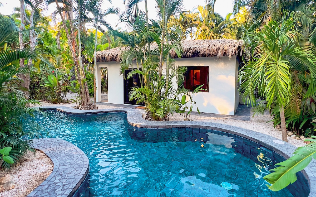 We are a family-owned boutique villa in the heart of Tamarindo, thoughtfully designed for your perfect vacation. Our tropical oasis blends Nordic-inspired modern design with a calm atmosphere. High ceilings, natural light & clean lines create an airy feel. Wood, concrete & white walls bring timeless elegance, and the gardens create a peaceful, natural setting. Your perfect Pura Vida experience!