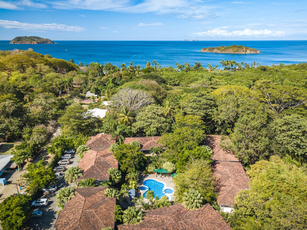 Nouvellement rénovée. Séjournez dans une superbe villa avec piscine à débordement privée, située dans une communauté sécurisée, proche des plus belles plages du Costa Rica. Entièrement rénovée en 2025, elle offre confort moderne et vue imprenable. • 2 chambres climatisées avec salles de bain privées • Espace ouvert avec cuisine équipée et salon cosy • Salle à manger extérieure pour admirer des couchers de soleil spectaculaires • Wi-Fi, alarme et parking clôturé