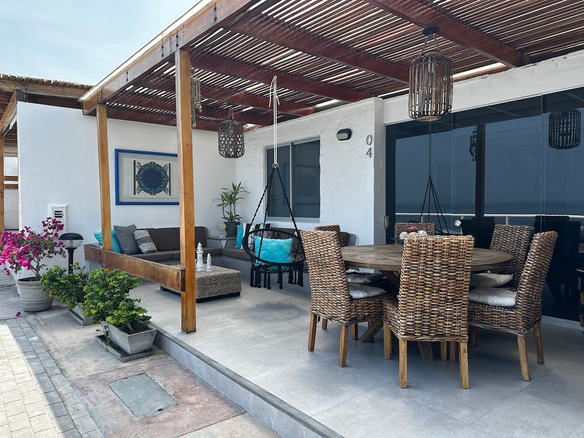 Direct ocean view from my 120-square-meter apartment on the 1st floor in the "Las Terrazas" condominium is perfect for families, surf lovers, remote workers, and long-term rentals looking for peace & relaxation. Located in the heart of Cerro Azul's surf point, my comfortable and modern space offers WIFI connexion. Close to points of turistic interest: Cerro Azul surf point: 30 m Historic lighthouse: 400 m Juanito Restaurant: 100 m Restaurant Don Satu: 100 m Puerto Azul Restaurant: 800 m