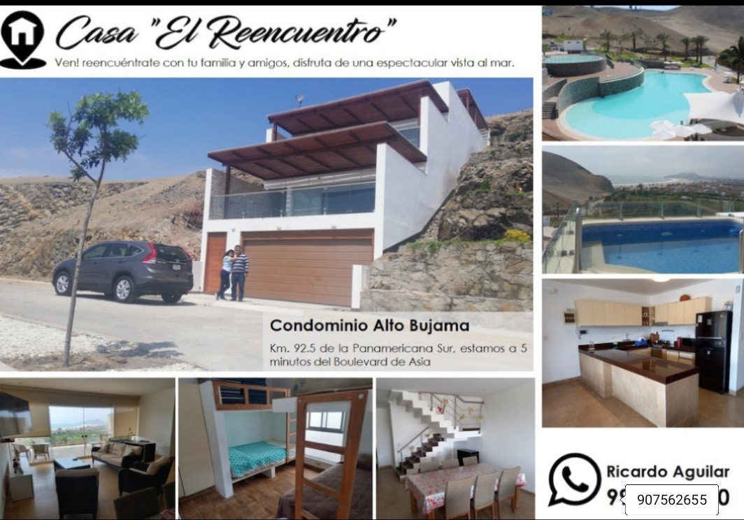 Relájate con la familia y amigos en este alojamiento donde podrás disfrutar de todas las comodidades a unos pocos metros de la playa y con una vista increíble. La casa es totalmente de estreno, amoblada y lista para poder hacer grata tu estadía. Está dentro de un condominio con áreas comunes, playa privada, piscinas, juegos infantiles, canchas de fútbol, frontón, tenis y usos múltiples.