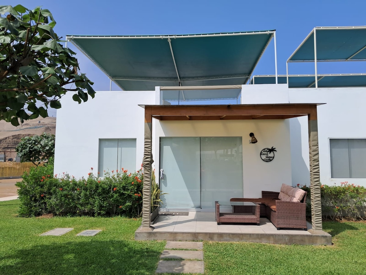 Relájate en este espacio tranquilo y familiar, muy cerca a Lima. En el Condominio Kala, frente a la piscina, bodega y al restaurante. El condominio ofrece canchas de tenis, fultbito, casa club con mesas de ping pong y acceso a la playa; donde se practica el surf y la pesca. Hay internet, 2 televisores 4k, DVDs. La administration del condominio exige un documento firmado y una declaración jurada, firmado por el huésped antes de su estadía.