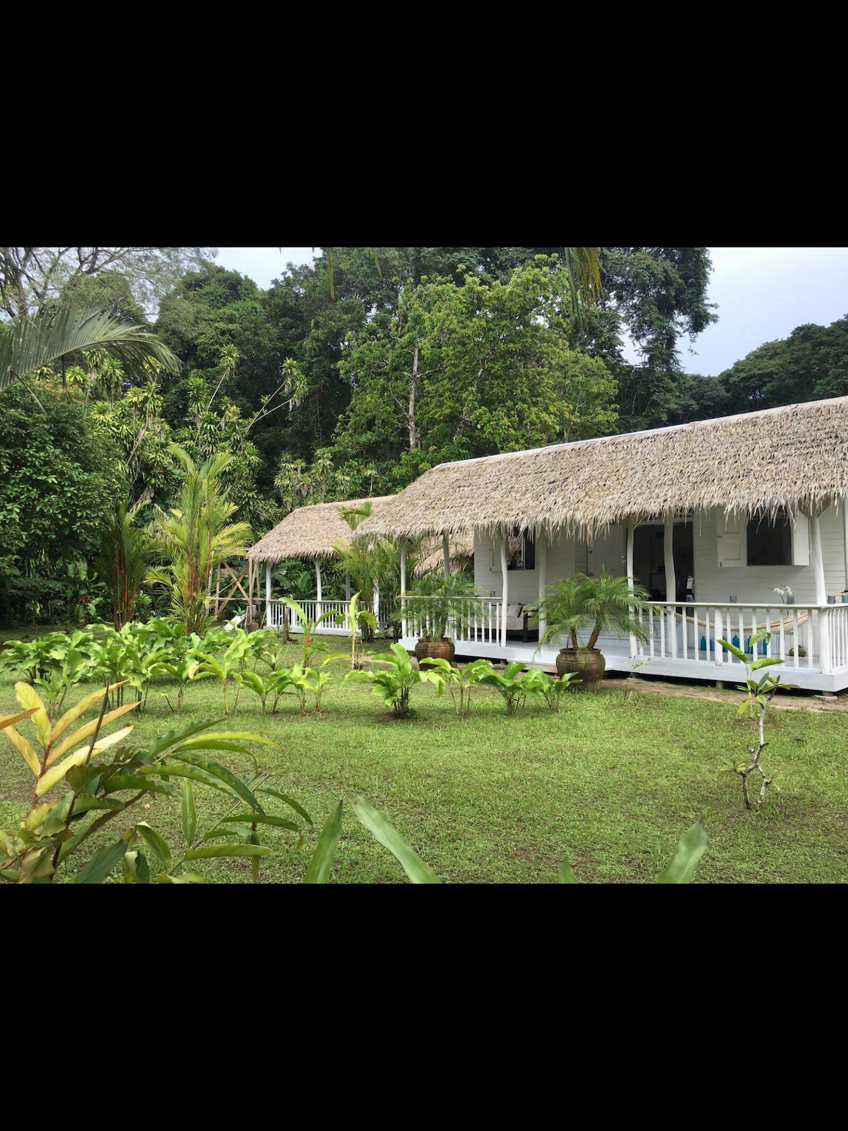 Una casa frente al mar, con piscinas naturales, la edificación reciente con mucho encanto y al estilo Caribeño contemporáneo y muy fresca. Es de una sola planta. Amplias zonas verdes completamente cercadas. La propiedad cuenta con una Casita para huéspedes en el jardín, con un dormitorio extra, sala de estar y baño. Ventiladores . Amplias zonas verdes rodeadas de bosque tropical que alberga diversidad de flora y fauna autóctona, mariposas, monos congo, osos perezosos, iguanas, etc...