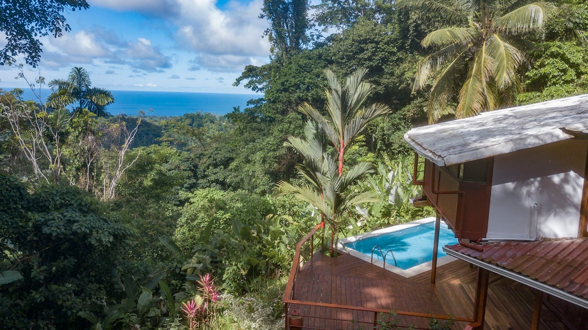 Nestled in the Caribbean Canopy this home combines the best of both worlds allowing the opportunity to enjoy the serenity and adventure of the jungle with only a 10-minute drive to the bustling artsy beach town of Puerto Viejo. Enjoy expansive rainforest and ocean views while sipping your favorite beverage immersed in the sounds of the jungle. Indulge in the brand-new pool overlooking the horizon. Open airy living area with glass windows throughout, dramatic greenery and modern conveniences.