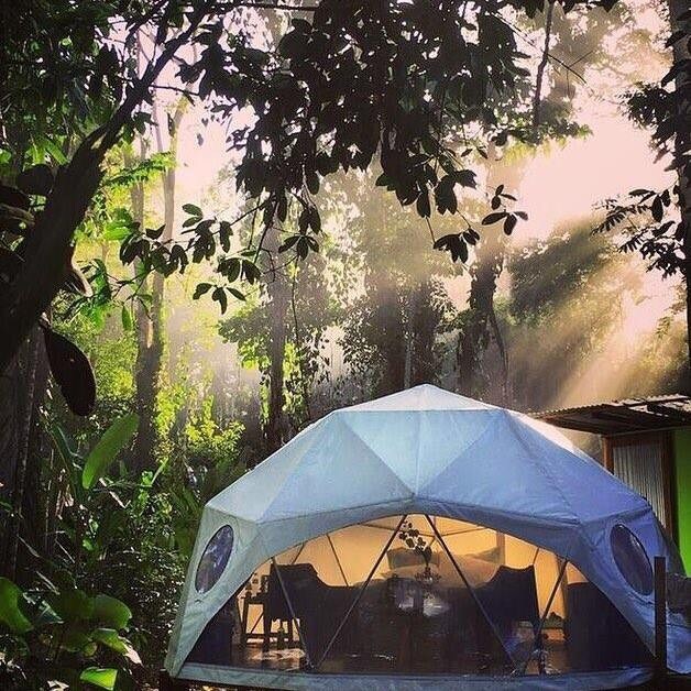 Experience a unique stay in our beachfront glamping domes in Manzanillo, Costa Rica. Nestled between lush tropical jungle and the Caribbean Sea, our domes offer privacy, comfort, and direct contact with nature. Wake up to the sound of waves and enjoy breathtaking sunrises from your deck. Explore jungle trails, spot local wildlife, or relax on the beach. Every detail is designed for your comfort: queen-size bed with orthopedic mattress, private bathroom,A/C, and Wi‑Fi. BREAKFAST INCLUDED