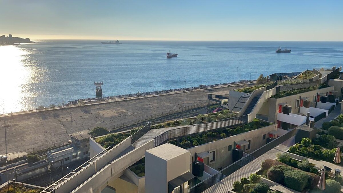 Departamento moderno en edificio Residencial, completamente equipado para relajarte sobre el mar con vista a la bahía de Valparaíso. Cercano a supermercados, restaurantes y centros comerciales. Con calefacción central e internet por fibra óptica para trabajar o descansar climatizado.