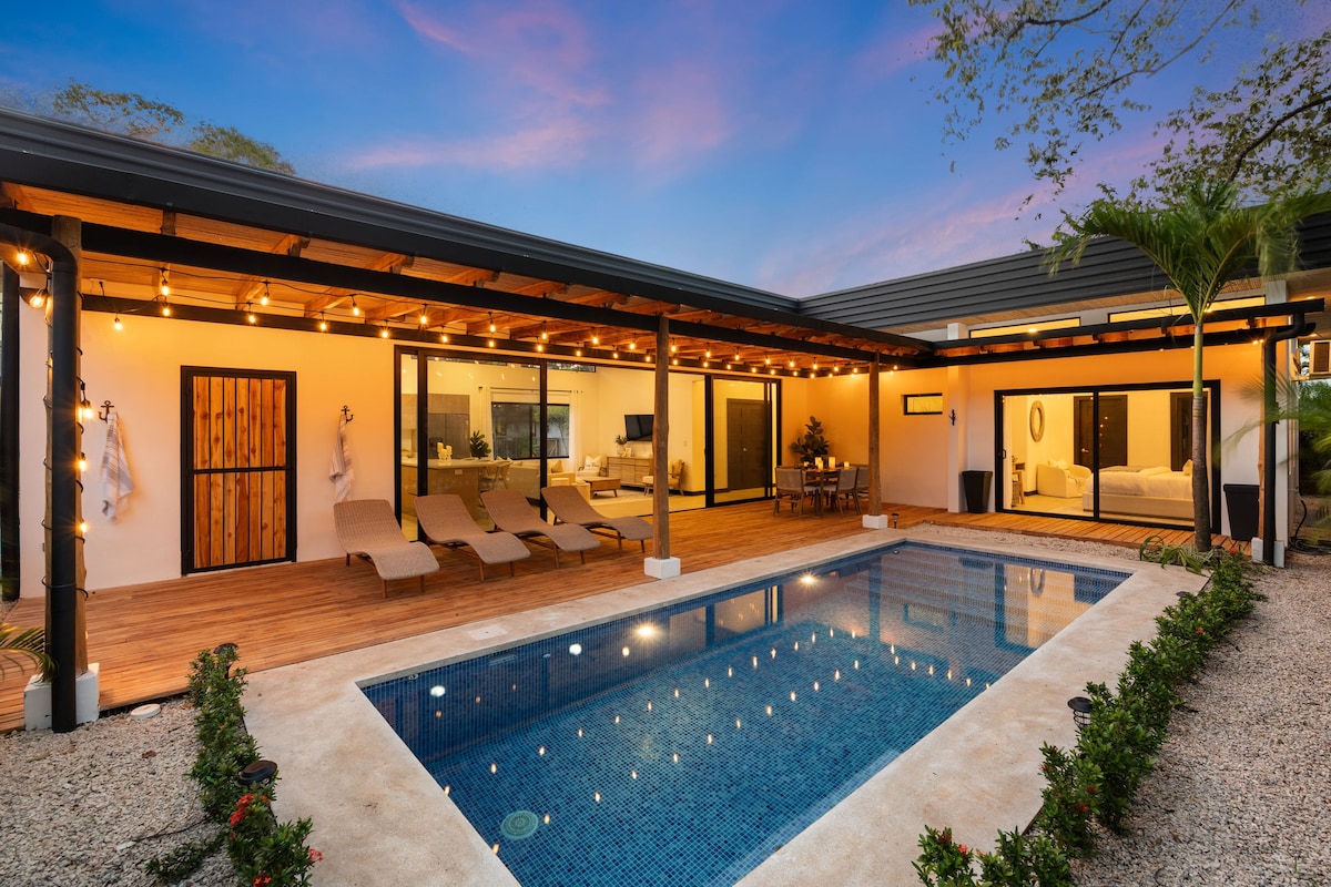 Welcome to Maitri, your cozy getaway! This 2-bedroom, 3-bathroom villa is crafted for comfort & relaxation. Located just an 9-minute stroll from the beach, you'll have the perfect blend of peace & adventure. Stay connected with 200mbit high-speed internet. Enjoy exclusive concierge service & access to Langosta Beach Club included with your stay! We are located in Central Tamarindo next to Tamarindo Night Market. 1 hr from LIR (Liberia Airport) and 4 hrs from SJO (San Jose Airport) by car.
