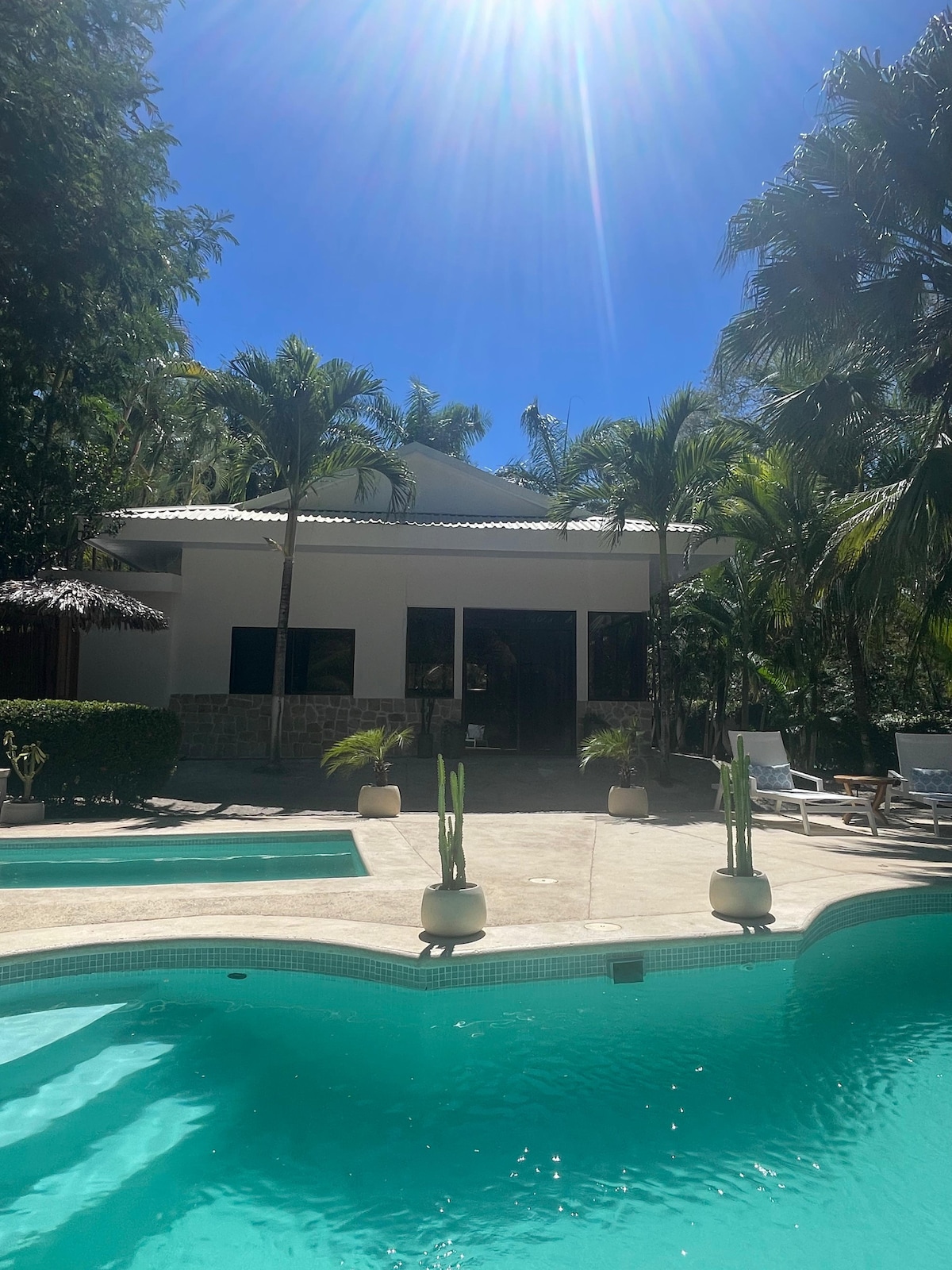 We are a family-owned boutique villa in the heart of Tamarindo, thoughtfully designed for your perfect vacation. Our tropical oasis blends Nordic-inspired modern design with a calm atmosphere. High ceilings, natural light & clean lines create an airy feel. Wood, concrete & white walls bring timeless elegance, and the gardens create a peaceful, natural setting. Your perfect Pura Vida experience!