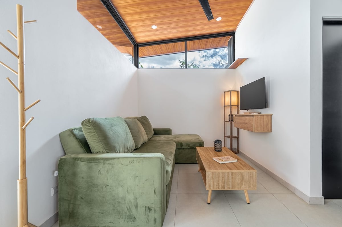 Bienvenido! Welcome to The Casa Aire Complex. Casa Aire Complex is an Eco-Friendly development with five unique homes .Apartment has - 1 bedroom 1 bath and a sofa bed on living room., sleeps 3 comfortably . All home-styles are insulated for energy efficiency and fully furnished. Guanacaste and other local woods are used in the interior design. The property has on-site grounds and security personnel on site . General common area is share for parking among the other units.