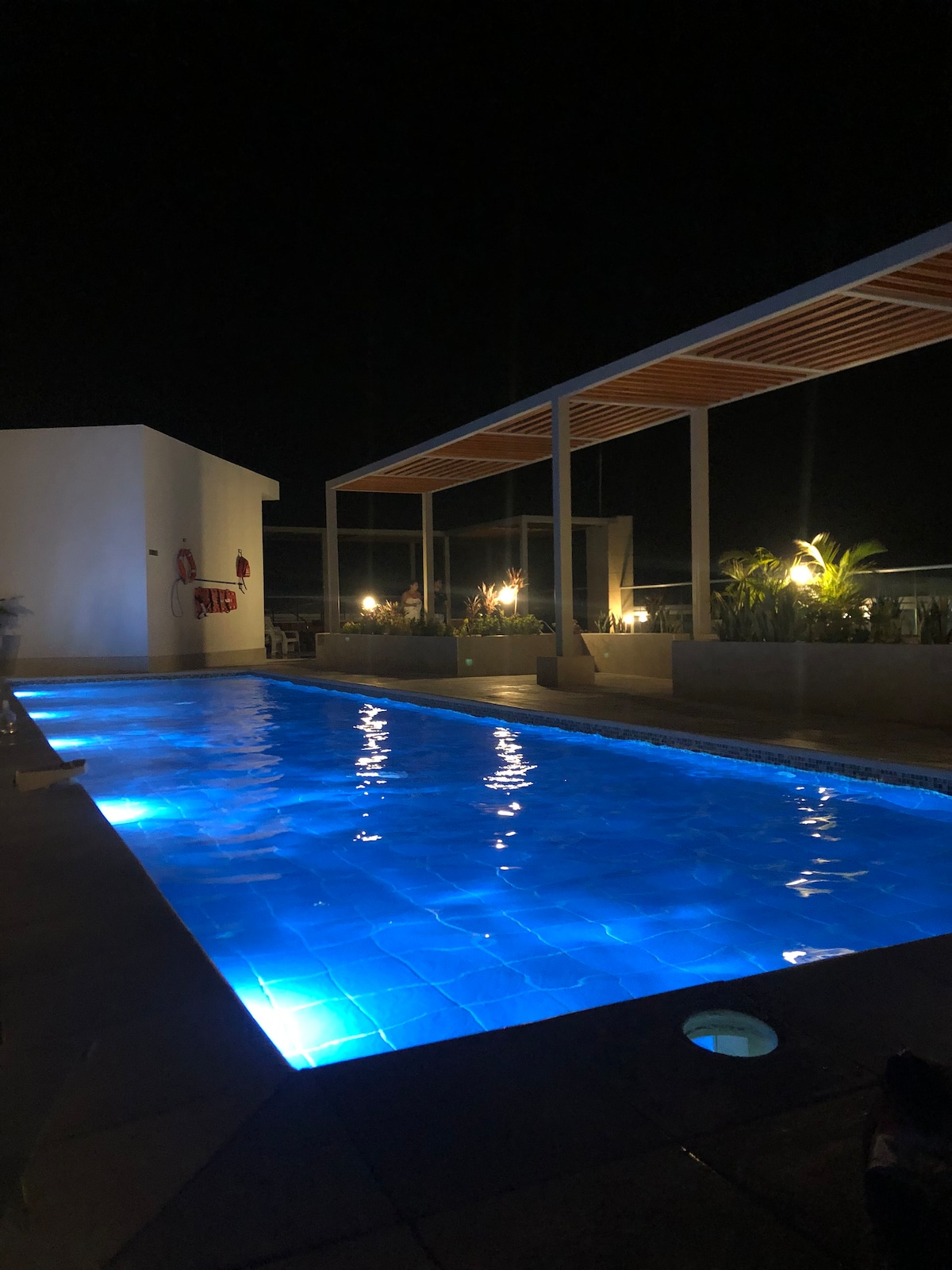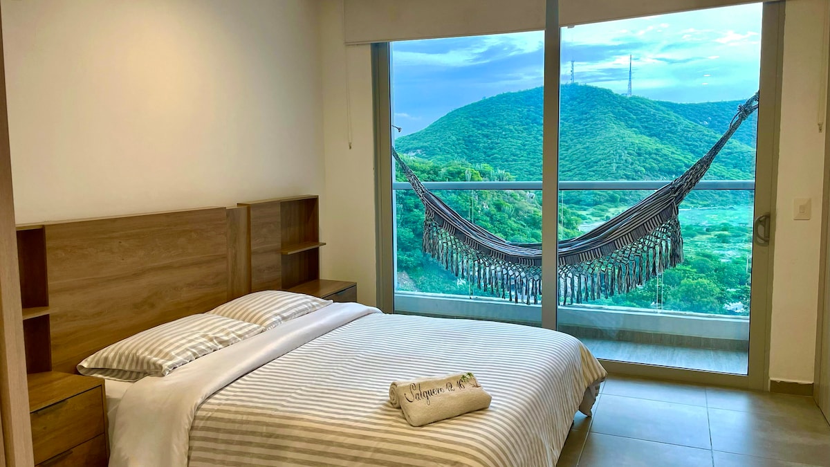 A *fully furnished modern suite* in Santa Marta just a short walk from Salguero Beach & close to El Rodadero, one of the city's most popular tourist spots. ✨ Highlights: Rooftop pool, Jacuzzis, Sauna, Turkish Bath, Game room, & Gym. MORE ⬇️. The building has free parking for visitors, subject to availability. The suite has a mountain view. Whether you're looking to unwind or explore, this suite is the perfect base for your time in Santa Marta.