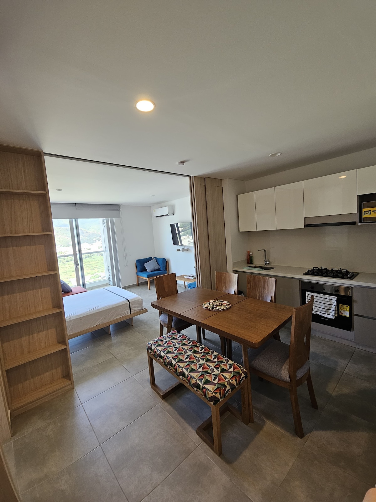 Your perfect getaway just 300m from the beach! Enjoy this modern studio apartment, just 5 minutes by car from El Rodadero. It features: 🛏️ Bedroom with a Queen bed, Smart TV, A/C, and blackout curtains 🛋️ Living area with a Murphy Bed and sliding door for extra privacy 🍽️ Fully equipped kitchen for your convenience 🧺 On-site Laundry Service available 🛒 Minimarket in the building with essential groceries Book now and enjoy a great experience!