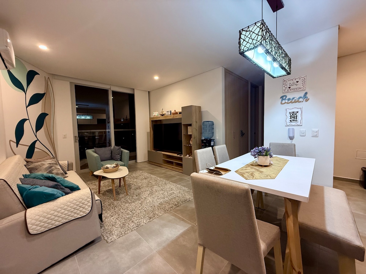 This comfortable apartment is perfect for couples, families or business travelers looking to be in a very good location and just steps from the beach. The location of this NEW apartment is in Playa Salguero, an area in Rodadero Sur that is completely quiet, comfortable and best of all, not so crowded. It is located 12 min from the airport, 8 min from Bello Horizonte and 15 min from the historic center. ! Welcome to CASÚ!