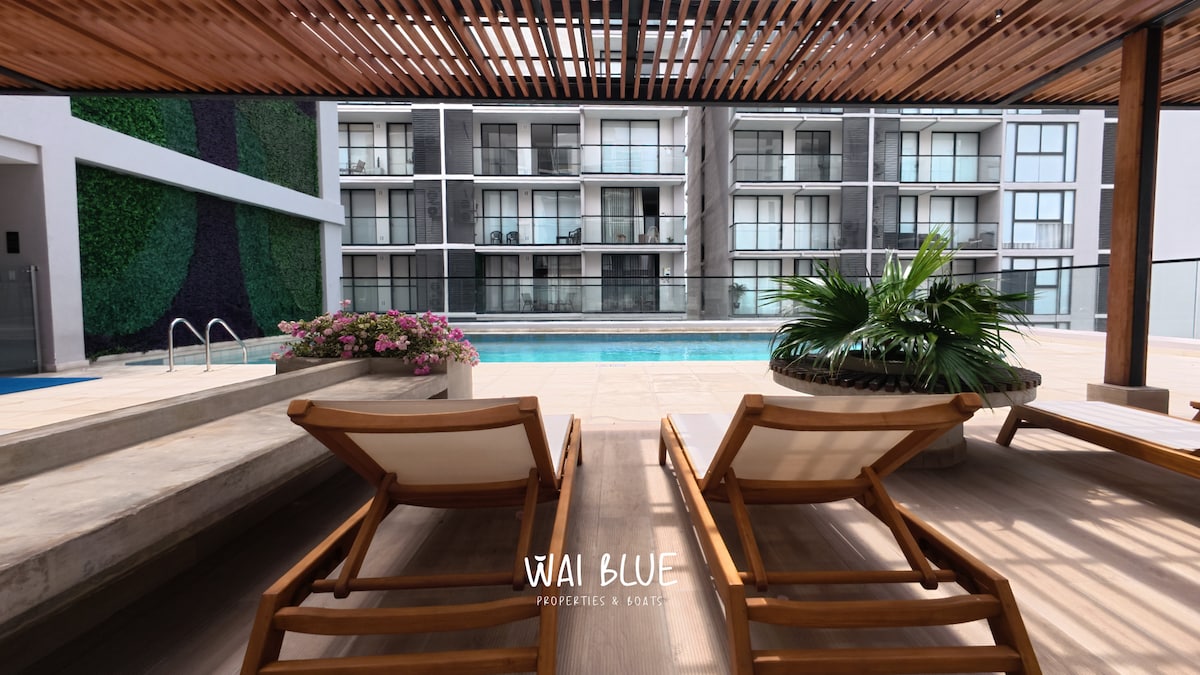Apartamento entero ubicado en la exclusiva playa de Pozos Colorados. Este espacio es ideal para parejas o familias pequeñas que vienen a descansar y a conocer de la hermosa ciudad de Santa Marta. Durante tu estadía podrás disfrutar de un ambiente tranquilo y de una gran vista que te permitirá contemplar la puesta de sol. El edificio tiene vigilancia las 24 horas, salida privada al mar, parque para niños, salón de juegos y piscina. Ofrecemos servicios adicionales de entretenimiento y turismo.