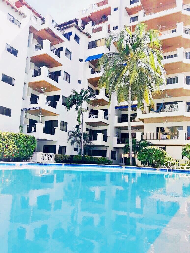 Hermoso apto de 83m2. Con una vista Exclusiva! Cuenta con cocina equipada, Nevera refrigerador, máquina para hielo, 2 habitaciones, 2 baños, Wifi, TV, 2 Aire acondicionados, balcón, Vista al lago, piscina y mar. Zona social, Restaurante, Pastelería, 2 Piscinas, Bar, Sauna, Turco, Sala de masajes, bañera de hidromasaje, Jacuzzi, gimnasio, parqueadero propio, vigilancia 24h con recepción tipo Hotel. Acceso DIRECTO AL MAR, playa privada y tranquila, carpas y sillas en la playa sin costo adicional.