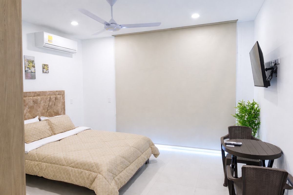 Located in the heart of Santa Marta’s Historic Center, this private loft offers the perfect balance between central location, privacy, and comfort. Just a short walk from Parque de los Novios, restaurants, bars, and the bay, with easy access to transportation to Tayrona. Designed for couples, digital nomads, and travelers seeking a quiet and comfortable stay, the space features high-speed fiber internet, a tropical-inspired design, and everything you need to relax or work remotely.