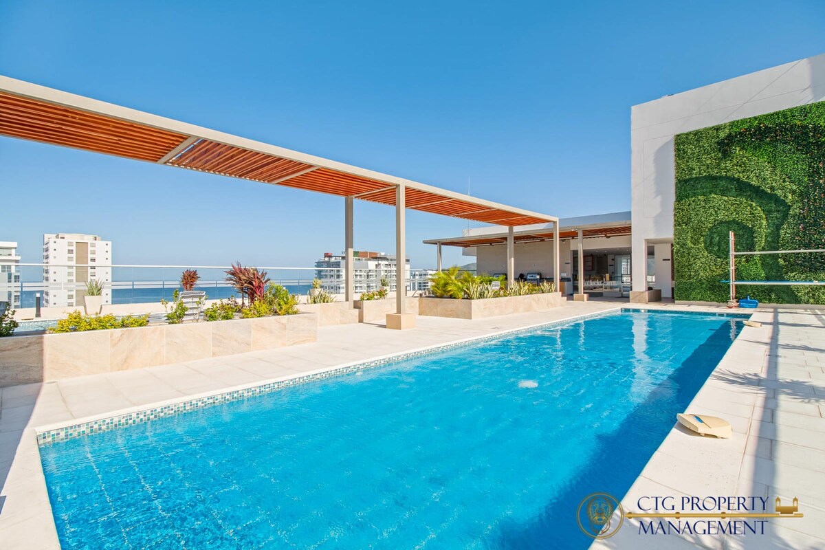 Disfruta un apartamento de lujo en la zona preferencial del Rodadero a tan sólo 15 minutos del aeropuerto internacional Simón Bolívar y a 10 minutos a pie del Rodadero, cuenta con salida privada a la playa, club de playa, zonas verdes con senderos ecológicos, terraza panorámica con zonas húmedas (Jacuzzis, bares, varias piscinas para adultos y para niños) entre otras amenidades como cancha de microfutbol, gimnasio, ping-pong, entre otras de estilo Resort para su disfrute.
