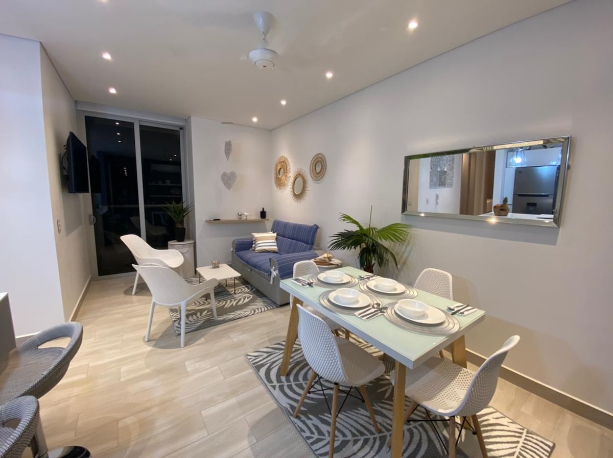 Located in the southern side of "El Rodadero", which is a residential area for locals, a very peaceful area of the city. You have beach access just one block away! there is a supermarket right next to us. You have one double bed and our sofa turns into 2 additional beds when needed. TV and wifi available. Very restaurants in the area. Access is with a code we will send. The condo is in a very small building without a reception, which makes it perfect for guests who prefer their privacy.