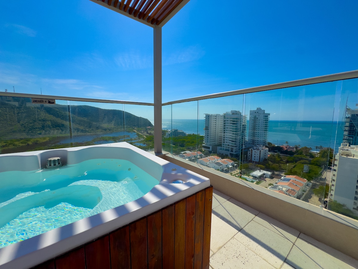 Privilegiado apartamento frente al mar, con jacuzzi privado. Está ubicado un exclusivo edificio del complejo Hotelero Irotama, con acceso a todas las instalaciones del resort 5 estrellas incluyendo restaurantes, bares, piscinas, práctica de golf, spa, cancha de tenis, gimnasio y actividades todos los días. Se encuentra ubicado en Bello Horizonte, a 5 Km del aeropuerto Simón Bolívar y a 7 Km del Rodadero. Transporte gratis desde y hacia el aeropuerto y dentro del resort.