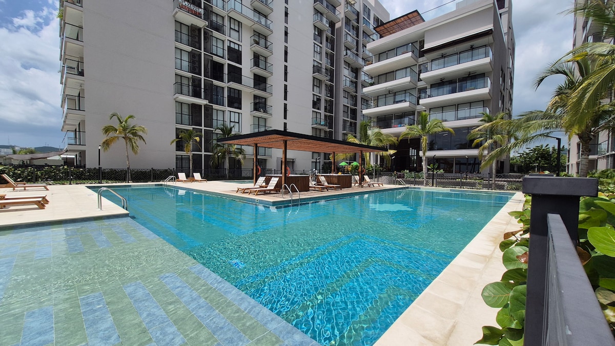 🏖️Alojamiento de Lujo frente a la Playa tipo RESORT! Atención 5⭐ con la calidez que hará sentir a tu familia como en casa. Disfruta de amenidades exclusivas como Piscina 🏝️BORDE INFINITO junto a sus 🛖KIOSKOS de ZONA PRIVADA de Playa! Tu familia podra disfrutar de los 💦jacuzzies, saunas, turco, 🏋️gimnasio y Zonas de Juegos y Piscinas para Niños. Ideal para descansar y crear recuerdos inolvidables. 🌞 Lindos Atardeceres! 🍽️ Servicio de culinaria disponible (consulta disponibilidad).