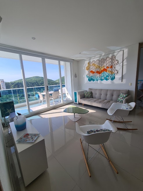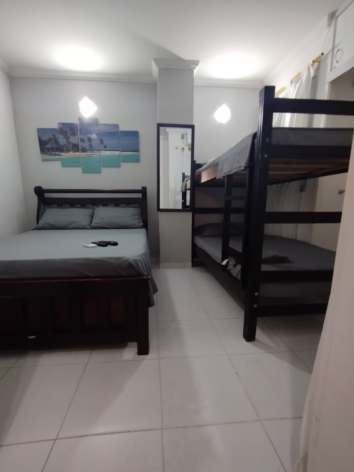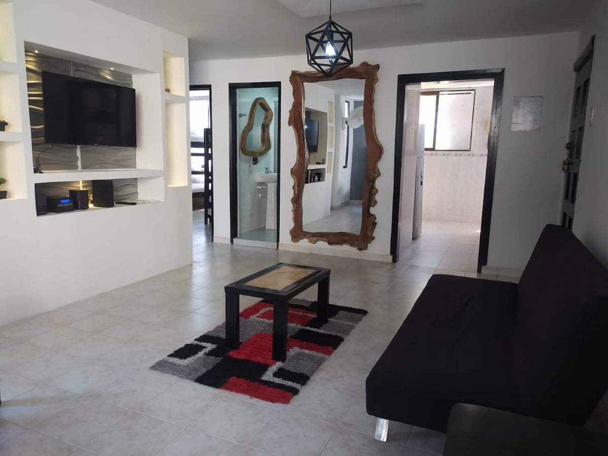 Located in the southern side of "El Rodadero", which is a residential area for locals, a very peaceful area of the city. You have beach access just one block away! there is a supermarket right next to us. You have one double bed and our sofa turns into 2 additional beds when needed. TV and wifi available. Very restaurants in the area. Access is with a code we will send. The condo is in a very small building without a reception, which makes it perfect for guests who prefer their privacy.