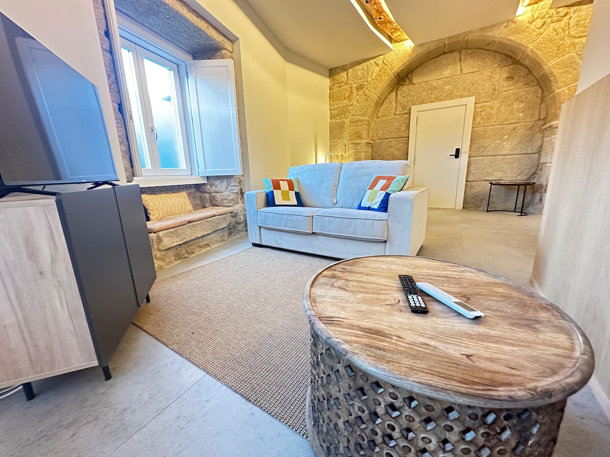 Una experiencia de lujo en este céntrico y luminoso apartamento equipado como una suite de hotel. Edificio histórico. El dormitorio, presidido por una confortable cama King size, Smart TV, balcón y un baño completo. El salón cuenta con una coqueta cocina americana, un comedor, Smart TV de gran formato, una cómoda mesa de trabajo junto al ventanal y un sofá- cama. Dos ventanales de tres metros de altura con balcones que se asoman a la “Puerta del Sol de Vigo”. Próximo al puerto- Islas-Cíes