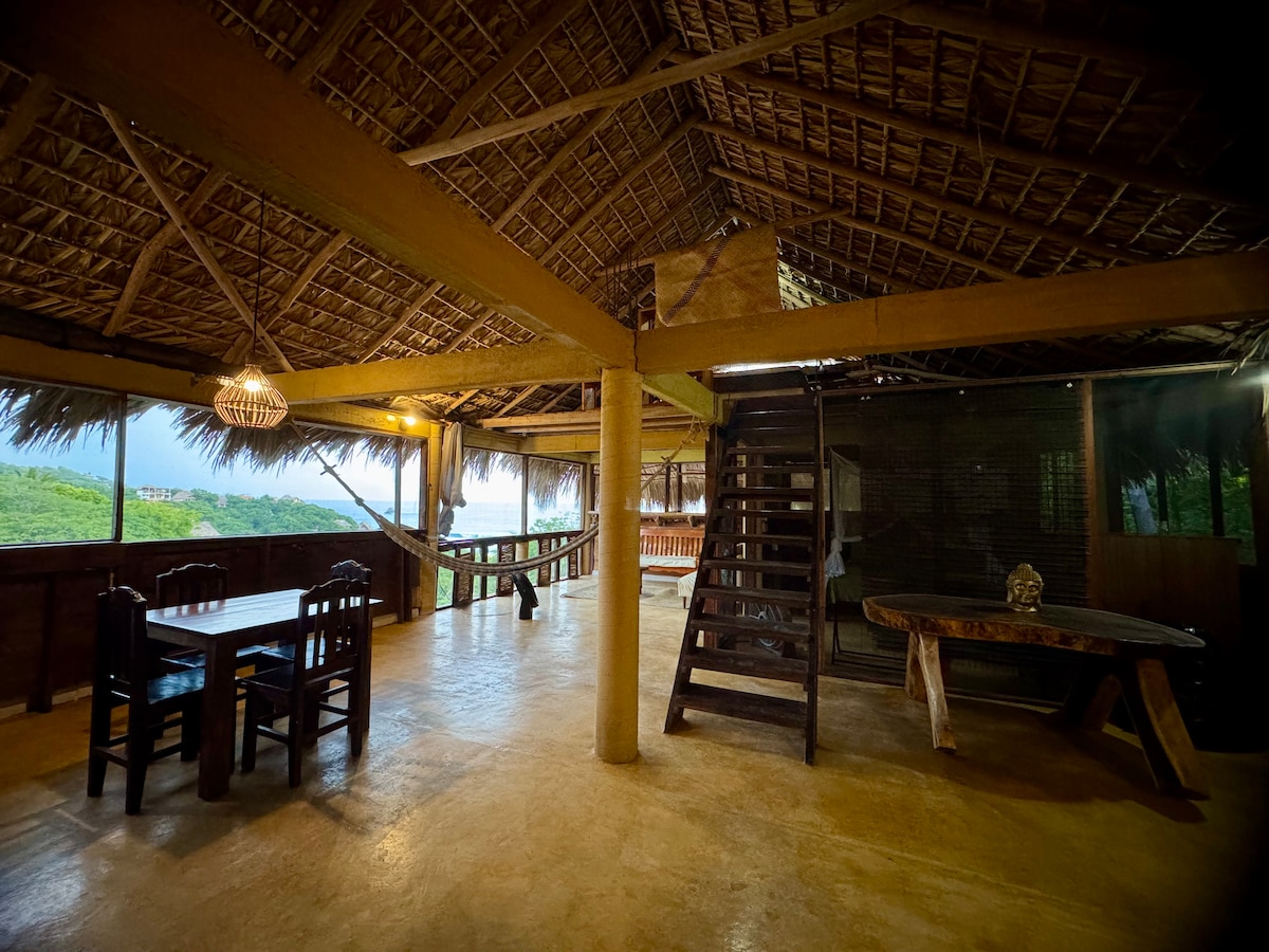 Encantadora cabaña en planta alta con AC, perfecta tanto para descansar como para trabajar en home office. Equipada con internet de alta velocidad Starlink y todos los servicios necesarios para disfrutar unas vacaciones inolvidables. Cocina completamente equipada y baño privado para tu comodidad. Rodeada de naturaleza. A solo unos minutos caminando de la playa, vive la magia de Zipolite: la armonía de una zona pacífica y arbolada combinada con la vibrante energía del mundo.