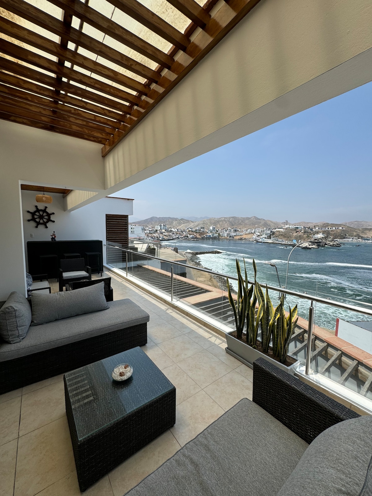 Vive el encanto de San Bartolo 🌊 en este lujoso departamento frente al mar con 5 habitaciones. Disfruta de un jacuzzi privado con vista al océano, sauna, gimnasio, terrazas panorámicas y Wi-Fi rápido. Perfecto para grupos, familias o viajeros con mascotas 🐾. Accede a piscina (verano), sala de juegos y más. Cerca de playas, cevicherías y bares. Ideal para relajarte o hacer home office. ¡Reserva ahora tu escape costero!