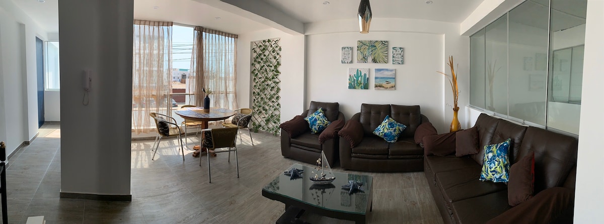 Nuestro departamento fue creado para pasar bellos momentos en familia, no solo sentirás las mejores vibras, también tendrás todo lo que necesites para pasar días increíbles y relajantes. Puedes disfrutar en la terraza de una parrilla, frente a una hermosa vista al balneario, duermes y despiertas con el sonido mágico del mar. Estamos en el segundo piso del condominio (solo escaleras) Recuerda tratar nuestra casa como si fuera tuya.